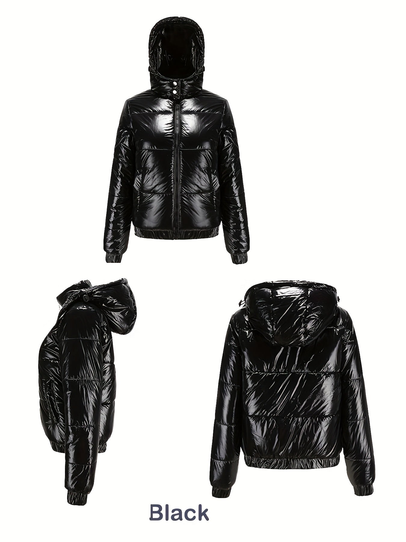 Die Damen Winter-Daunenjacke Mit Kapuze | Lange Ärmel zeigt eine gesteppte Oberfläche, eine integrierte Kapuze und lang geschnittene Ärmel. Das Modell verfügt über einen frontseitigen Verschluss, seitliche Taschen und eine strukturierte Silhouette. Kombiniert werden kann die Jacke mit Jeans, Strickoberteilen oder schlichten Basic-Shirts und eignet sich für verschiedene Alltags- und City-Outfits.