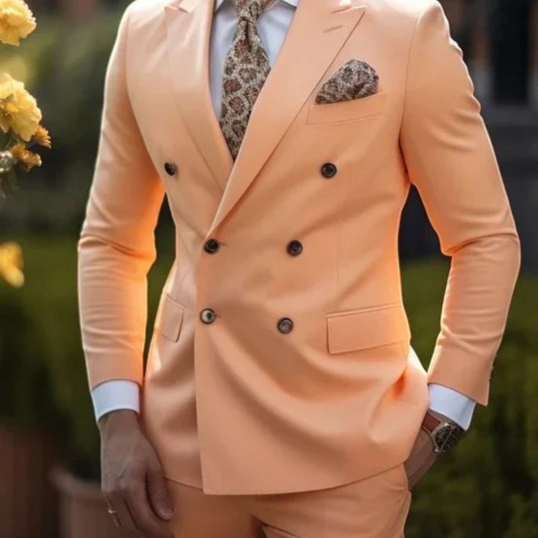Der Herrenanzug Für Hochzeitsgäste | Formal ist ein vielseitiges Kleidungsstück für besondere Anlässe. Mit seinem klaren Schnitt und der klassischen Gestaltung ergänzt er formelle Outfits. Der Anzug kann mit Hemd, Krawatte oder Fliege kombiniert werden und eignet sich für Hochzeiten, Empfänge oder andere formelle Gelegenheiten.